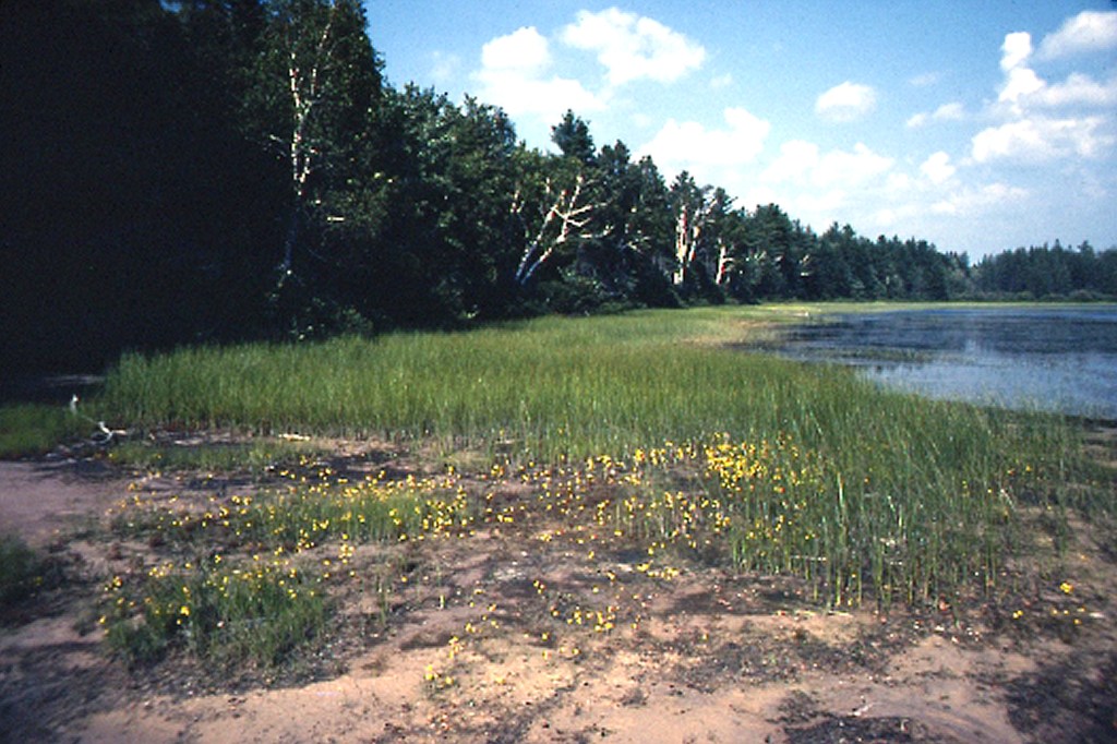 These plants have quite precise habitat requirements. They generally occur on gently-sloping sand or gravel shorelines. There is usually just enough wave energy to remove accumulations of peat that would otherwise form bogs. Water levels fluctuate. High water periods kill shrubs that might otherwise invade the habitat, while low water periods allow the coastal plain plants to regenerate from buried seeds.