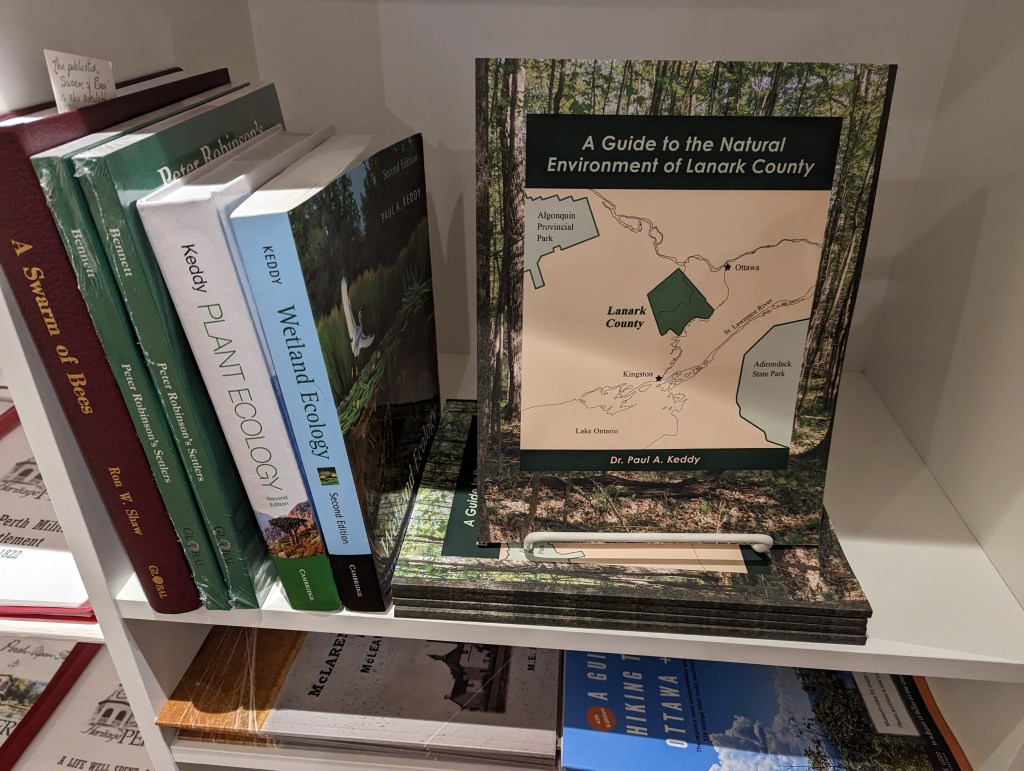 A Guide to the Natural Environment of Lanark County is now available at the Perth Museum gift shop. The museum is set in an historic stone house built in 1840. And, that same bookstore also has copies of Wetland Ecology and Plant Ecology.