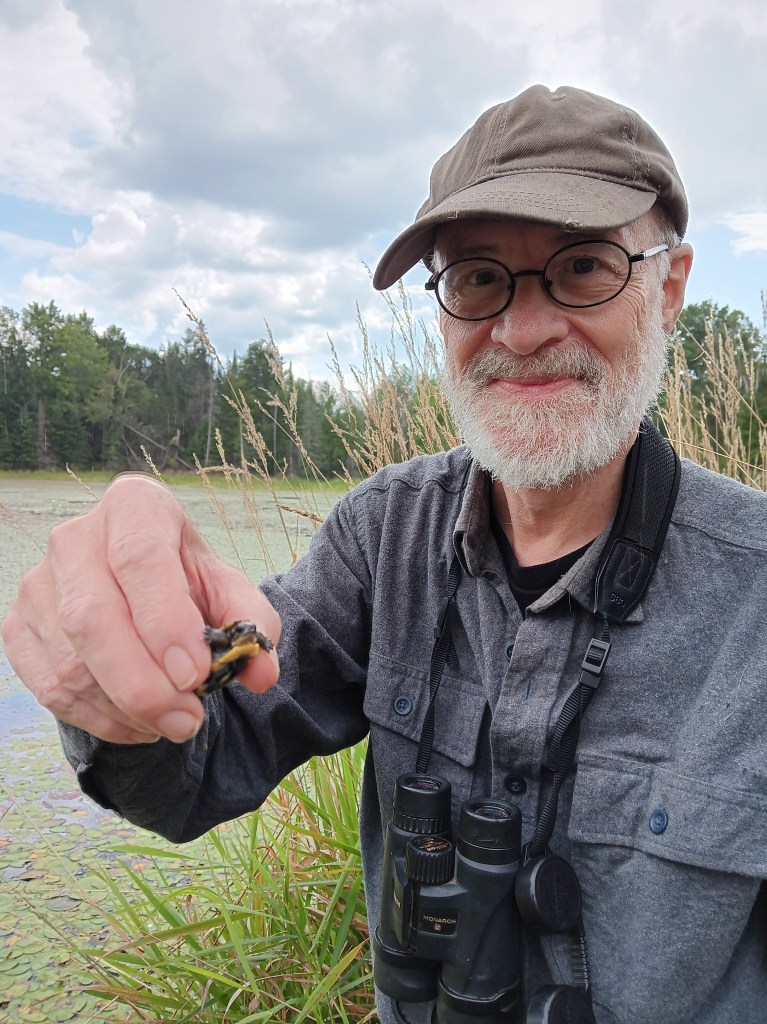 On Thursday August 23 there was a special event in the wetlands of the Keddy Nature Sanctuary. Seven newly-hatched Blanding’s turtles were released. These turtles came from a nest found along Blue Heron Road in the spring of 2023. The nest was in a precarious location, so it was moved to be incubated in Ottawa by David Seburn, as part of a nest rescue program affiliated with the Canadian Wildlife Federation. Blanding’s Turtles were already known to be present in the provincially significant Scotch Corners Wetland that includes the wetlands on both KNS and Blue Heron Wetlands. The stream running through the release area connects these two properties, so these turtles will have plenty of room to explore. It may take fifteen or twenty years until they mature to the age when they can reproduce. The fields and rock barrens on these MMLT properties will provide open sunny habitats where these turtles will be able to nest someday. Over time, one can hope that these released turtles will help build up Blanding’s Turtle populations so they recover and become more common again.