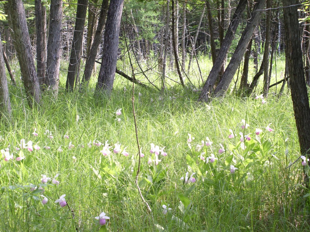 There is active management of conditions at the Purdon Fen, with occasional removal of White Cedar trees to maintain the open fen conditions. This provides the necessary sunny habitat for species such as Showy Lady’s-slipper.